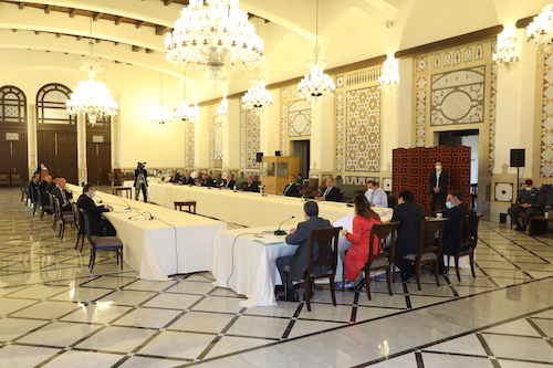 A working session between economic entities and several ministers has been organized at the Grand Serail. It was partly chaired by Prime Minister Hassan Diab and attended by Minister of Finance Ghazi Wazni, Minister of Environment and Administrative Development Demianos Kattar, Minister of Information Manal Abdel Samad and Minister of Industry Imad Hobballa. We present as well: Charles Arbeed, Head of the Economic and Social Council, Mazen Soueid, Chairman of IDAL, Fady Gemayel, President of the Association of Lebanese Industrialists, Fouad Zmokhol, President of the Association of Lebanese Businessmen and Women, Pierre Achkar, President of the Lebanese Federation For Tourism Industries, Salah Osseiran, Head of the National Council for...