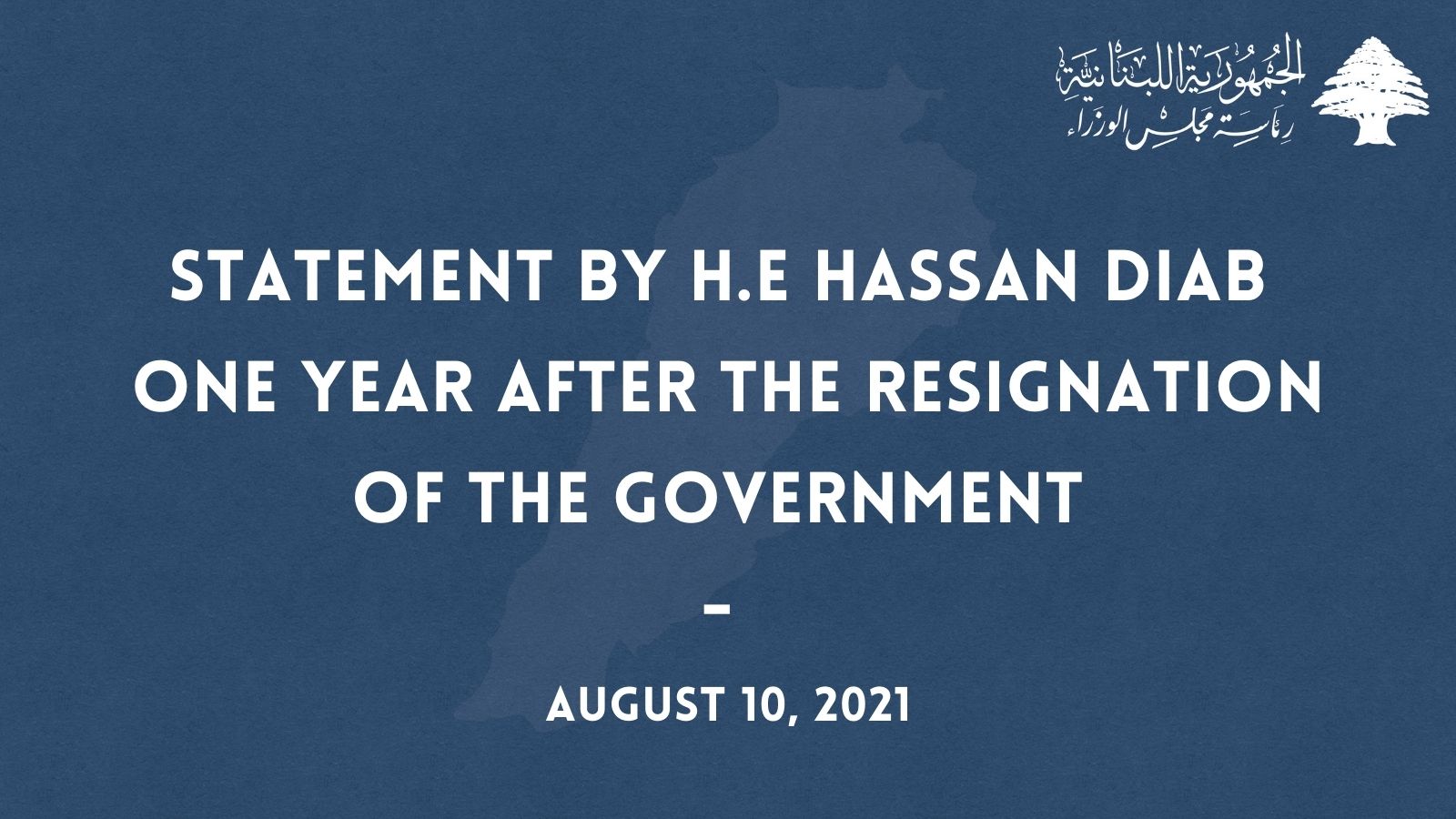 One year after the resignation of the government, Caretaker Prime Minister, Hassan Diab, issued the following statement: